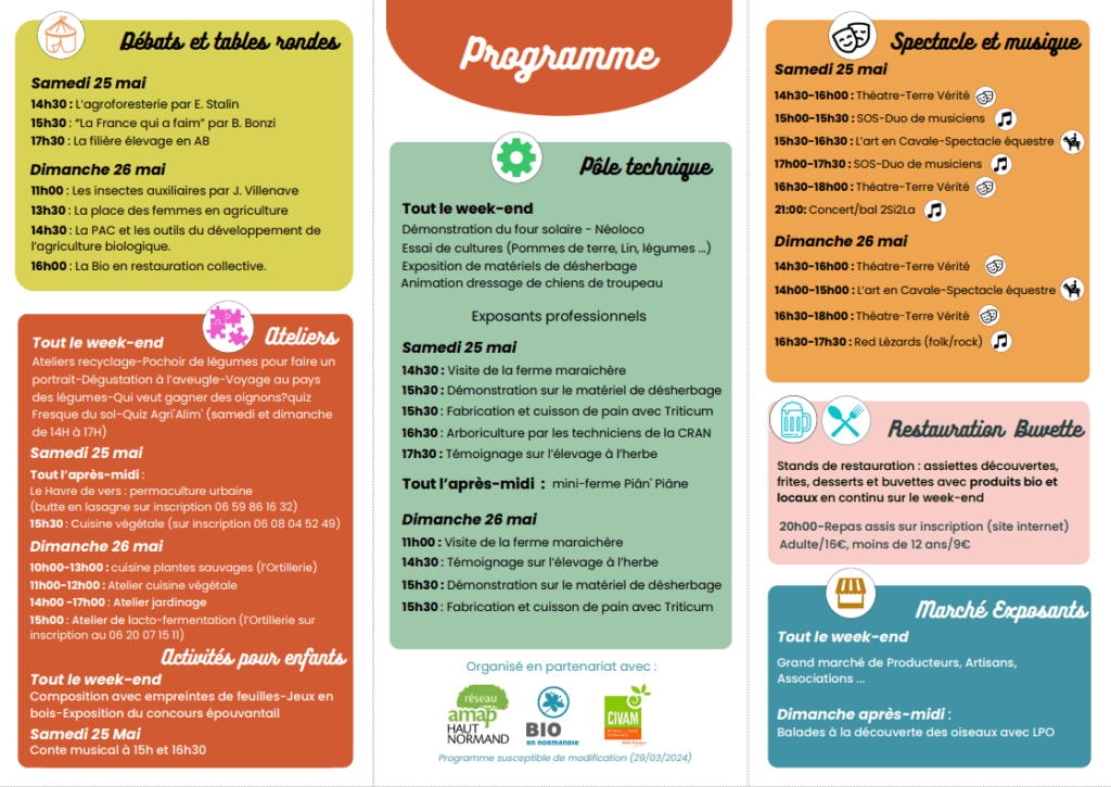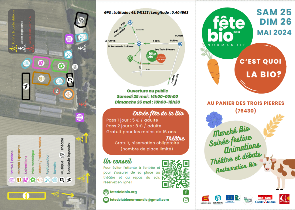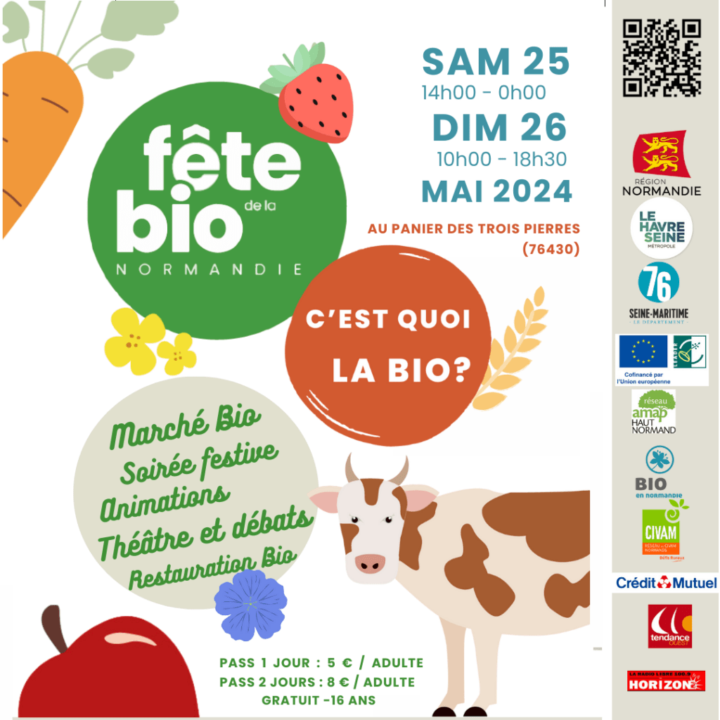 Comme vous le savez peut-être déjà, la Fête de la Bio aura lieu les 25 et 26 mai prochains au Panier des Trois-Pierres, à côté de Saint-Romain de Colbosc : une première en Seine Maritime !