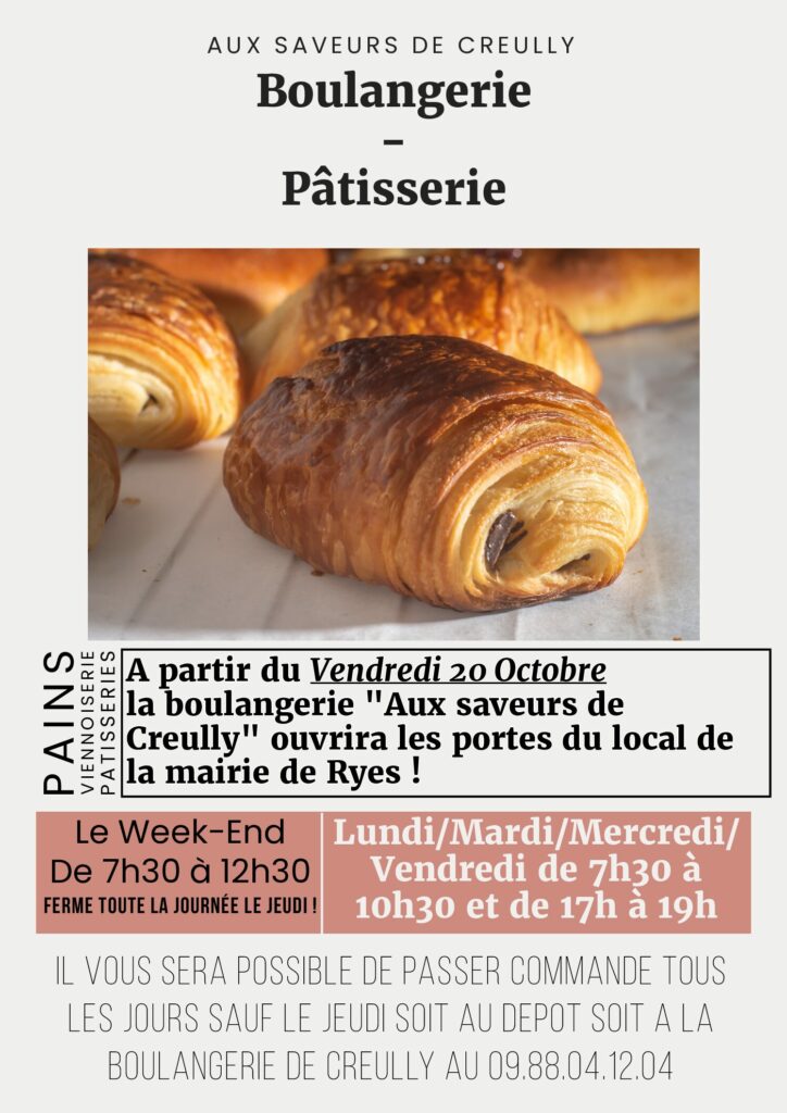 Ouverture du local Boulangerie ! Vous devriez également aimer Dépôt de pain 3 juin 2024 Assemblée Générale de Ryes Infos 20 mars 2024 Brocante de Ryes 13 août 2023