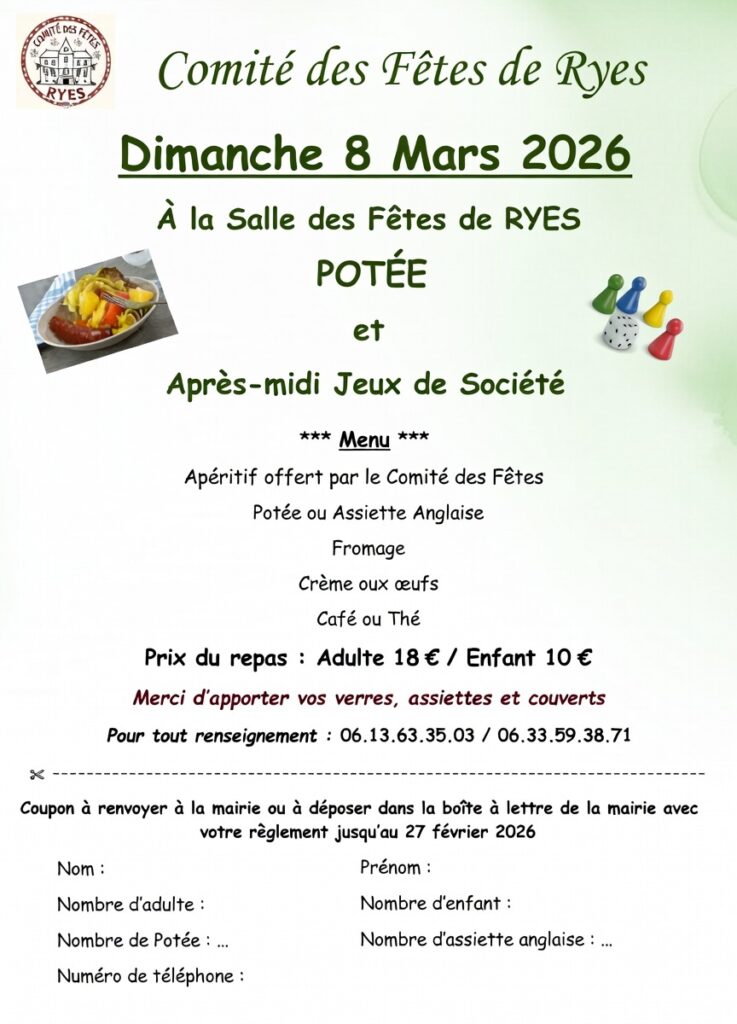 Le Comité des Fêtes de Ryes vous invite à un moment convivial et gourmand !