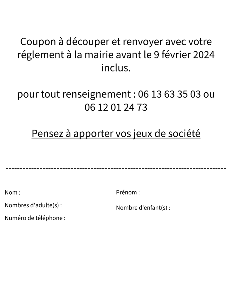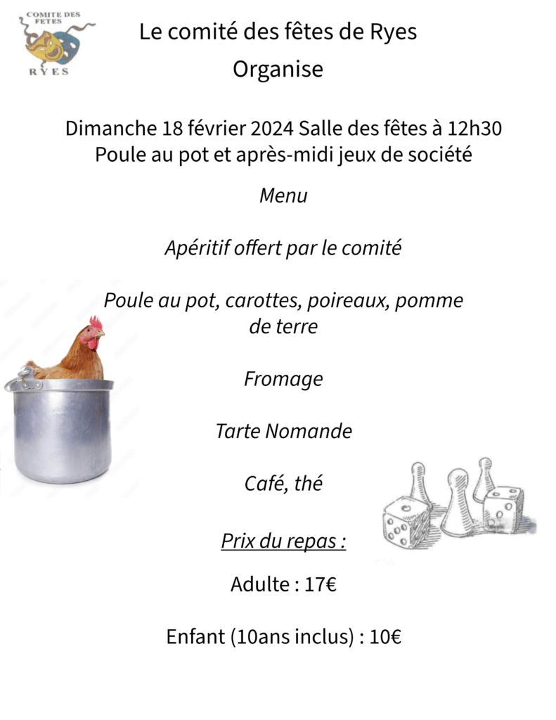Poule au pot organisé par le comité des fêtes de ryes ! Vous devriez également aimer La zone de circulation régulée (ZCR) et le stickage des véhicules – RTZ and sticker application 23 avril 2024 Atelier nutrition et cancer 27 janvier 2025 Chasse aux œufs ! 8 avril 2024